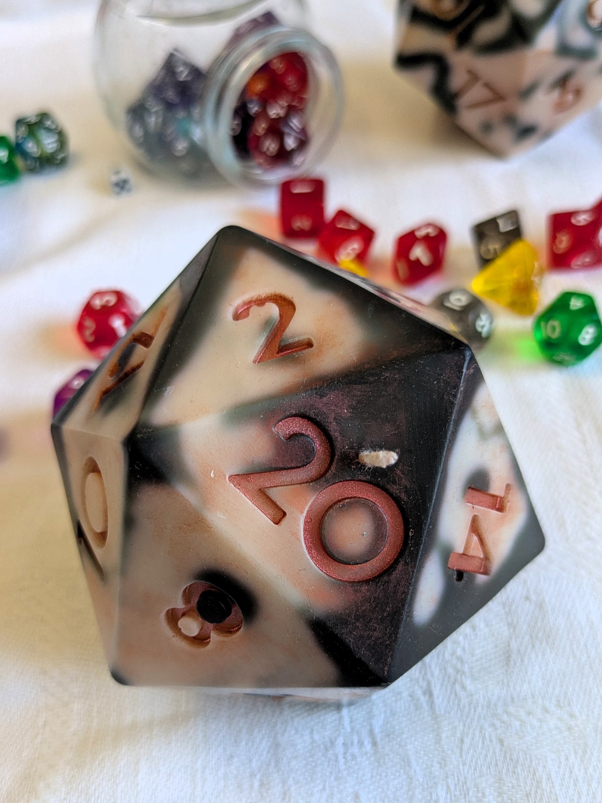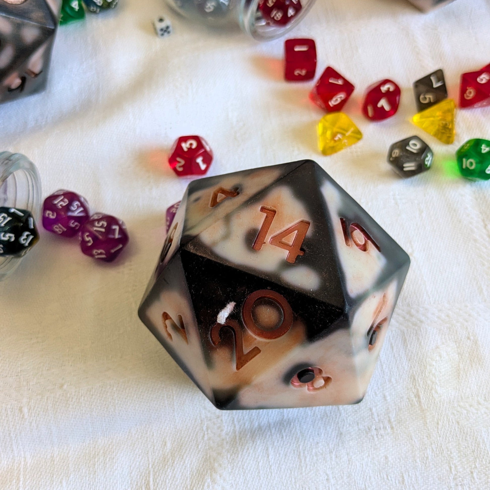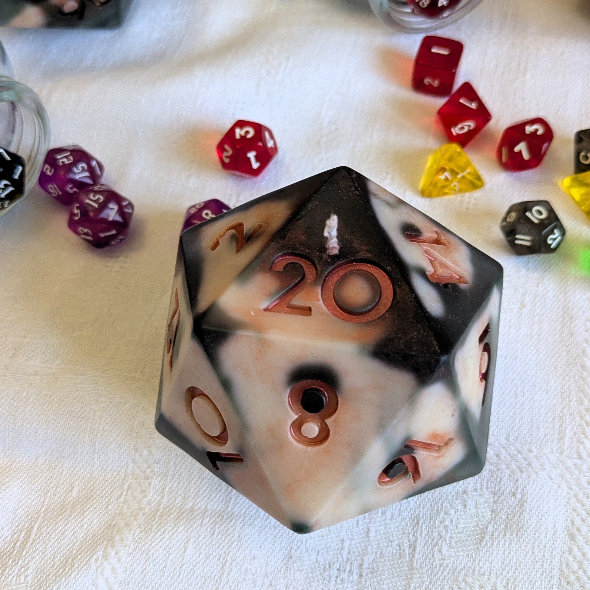 Whether you’re rolling for initiative or just rolling through life, our d20 candle brings a touch of magic—and mischief—to your space. Each hand-poured soy wax candle is shaped like a full D20, with bold marbling and vibrant inking that gives it an epic, otherworldly look.