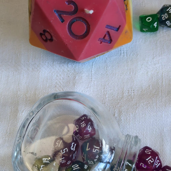 Whether you’re rolling for initiative or just rolling through life, our d20 candle brings a touch of magic—and mischief—to your space. Each hand-poured soy wax candle is shaped like a full D20, with bold marbling and vibrant inking that gives it an epic, otherworldly look.